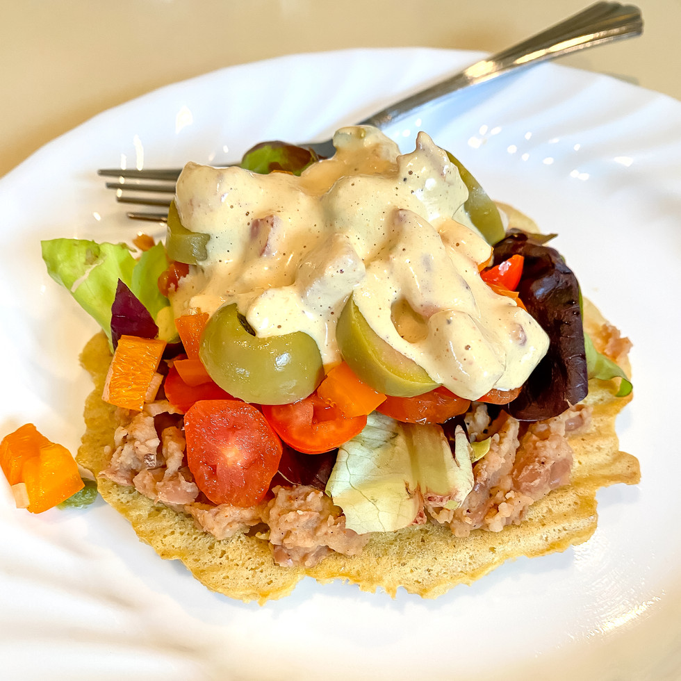 I've made it a few times in the last several weeks and had an idea to try it for a replacement for taco or chalupa shells. Although, I will say it was a delicious alternative, it was more like an open-faced Mexican sandwich, which led to another alternative.